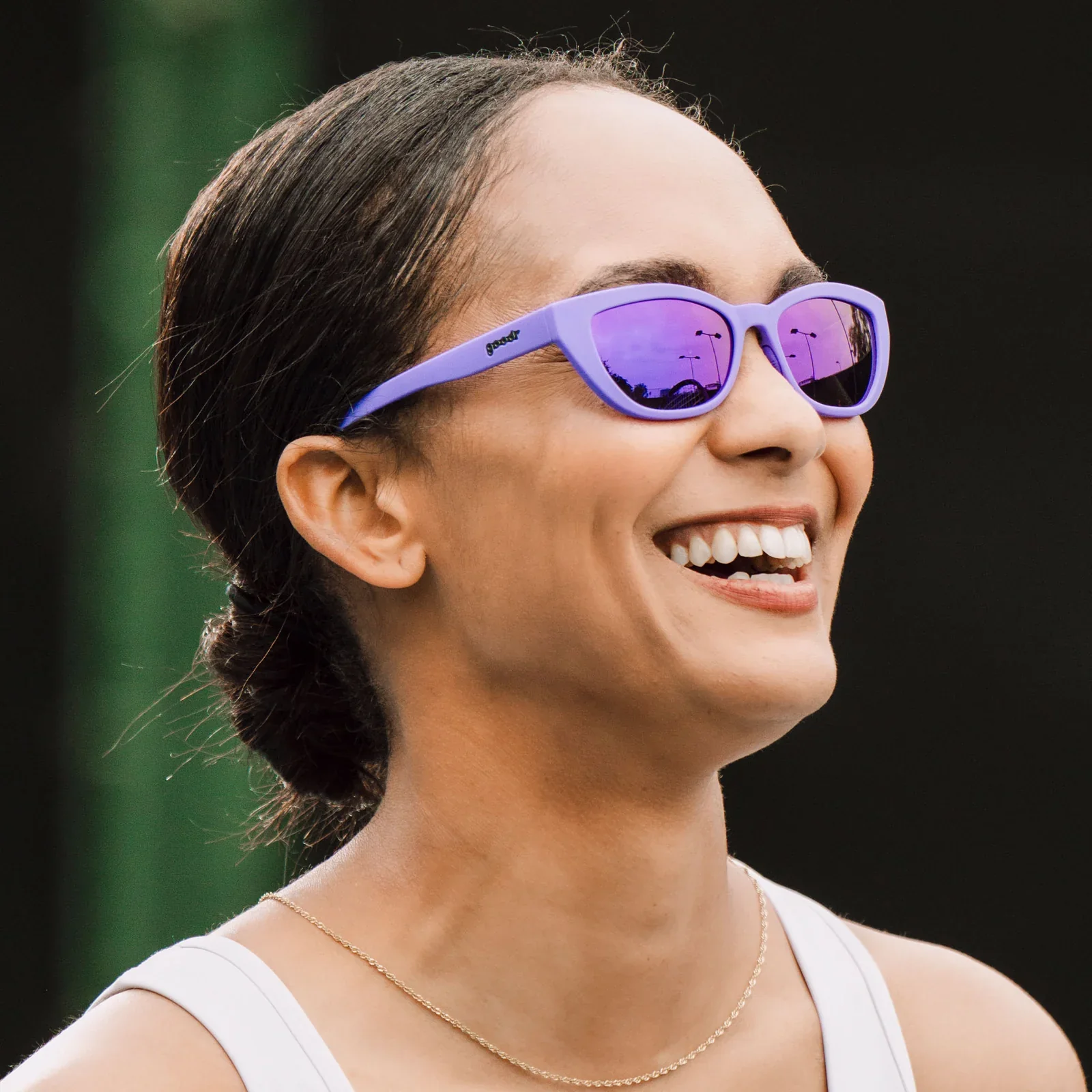Pounce on power hour like a panther, nonchalantly swatting away tasks while looking viciously vogue in these bold, deep purple cat-eye Cheetah G sunnies with purple reflective lenses.